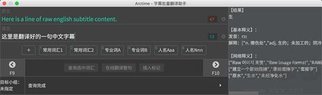 Arctime提供了直觀易用的字幕批量翻譯輔助工具,來加速字幕翻譯的過程。通過翻譯助手可以快速的進行人工翻譯,也可以讓機器通過在線翻譯進行快速輔助(查詞、翻譯整句)。