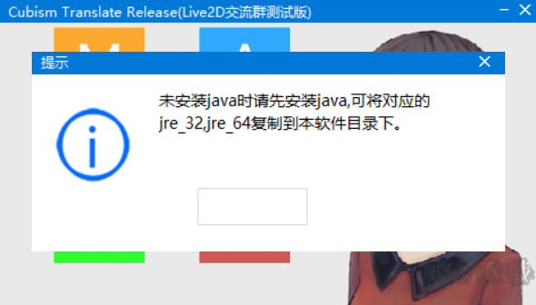 2、仍舊用WinRAR解壓【jre_64】,【jre_32】和【Cubium_Editor_2.1.14_簡(jiǎn)體中文新.zip】三個(gè)壓縮包,打開【Cubium_Editor_2.1.14_cn.exe】。如果你電腦中裝有Java,可以直接使用。否則會(huì)出現(xiàn)下圖情況,需要把解壓的【jre_64】,【jre_32】文件夾放到【Cubium_Editor_2.1.14_簡(jiǎn)體中文新】文件夾中。