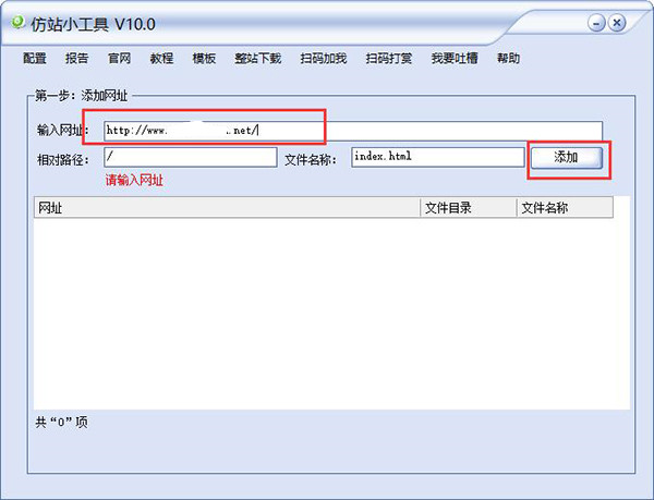 1、添加你要下載的網(wǎng)頁url地址到仿站小工具中