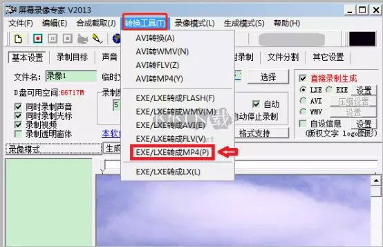 7.后期轉(zhuǎn)換功能,支持LXE/EXE/AVI轉(zhuǎn)成其它各種格式(MP4/FLV/GIF/WMV)