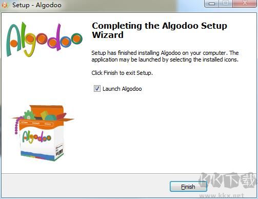 7、安裝結(jié)束,提示Launch Algodoo啟動軟件,點(diǎn)擊finish完成安裝