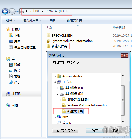 2、彈出選擇共享路徑:(例如:d:\新建文件夾)