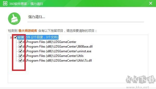 5、360軟件管理提示,卸載完成,發(fā)現(xiàn)有殘留,再點一下強力清掃。
