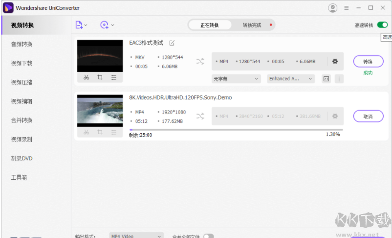 萬興優(yōu)轉(zhuǎn)電腦版是一款功能非常強大且非常好用的視頻格式轉(zhuǎn)換軟件,這款軟件的兼容性非常的強大,能夠支持用戶合并視頻,視頻壓縮,視頻編輯,視頻錄制等,并且轉(zhuǎn)換的過程也不會讓你的視頻丟失關(guān)鍵幀,使用起來簡單高效,感興趣或者有需要的小伙伴就快來kk網(wǎng)站下載體驗一下吧。