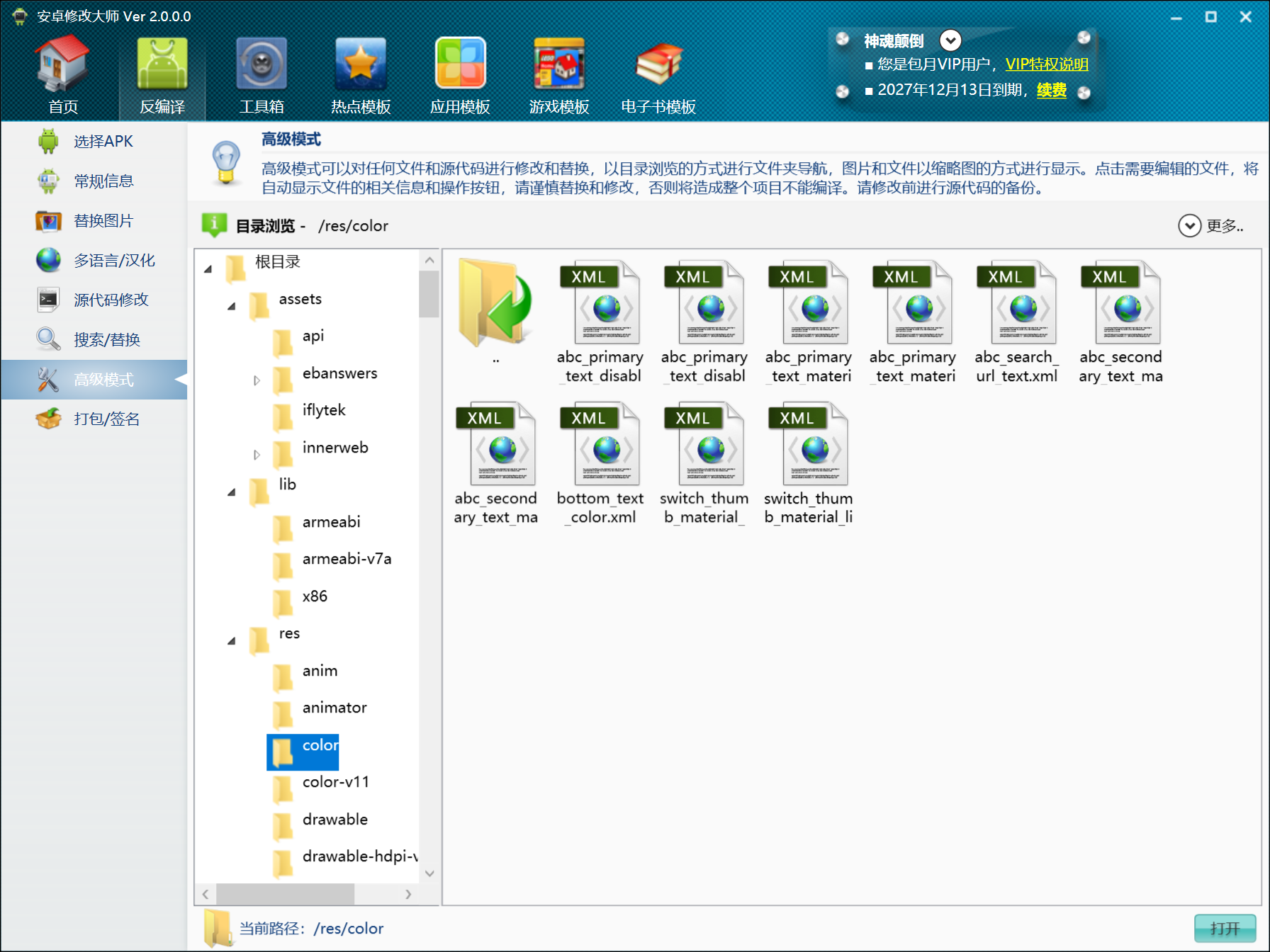 kk下載站為大家分享《安卓APK反編譯修改大師》軟件下載,安卓修改大師是一款專業(yè)破譯安卓軟件并進行反編譯的文件修改軟件。用戶使用本軟件可以輕松將任何安卓APK安裝包進行反編譯,包括替換應用圖片,軟件漢化,源代碼修改等等操作,將軟件修改成自己想象的樣子。軟件內(nèi)還有各種軟件模板,工具箱等等供用戶學習使用。對軟件感興趣的朋友們不要錯過了,快來下載體驗吧!