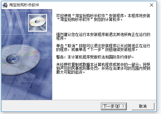 下載淘寶天貓搶購軟件,解壓壓縮包,雙擊.exe文件,彈出界面,根據(jù)向?qū)Р僮鳎?br />