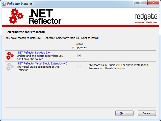 You have chosen to install .NET Reflector. Select any tools you want to instal: