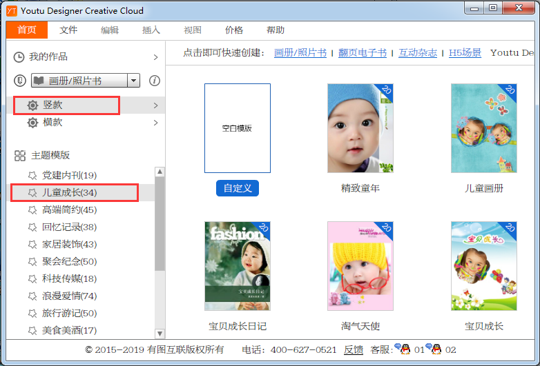 2、這里小編選擇豎款,其提供了多種模板供用戶選擇,選擇兒童成長(zhǎng)m.qabbs.com