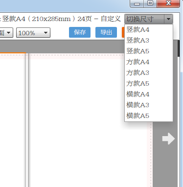 7、在切換尺寸一欄可以選擇你所需要的頁面尺寸。