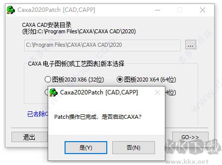 3、成功安裝軟件后,打開(kāi)crack文件夾,右鍵以管理員身份運(yùn)行Caxa2020+Patch.exe,選擇安裝的版本(32位或64位,再選擇cax2020的安裝目錄打補(bǔ)丁即可