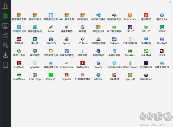 2、可以看到系統(tǒng)激活工具、分區(qū)工具、驅(qū)動(dòng)工具、硬件檢測(cè)與測(cè)試工具等等應(yīng)有盡有,如果要下載軟件,可以先點(diǎn)擊右鍵查看軟件的縮率圖,可以看到部分界面。