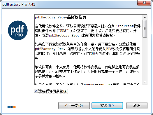 3.閱讀許可協(xié)議,選擇接受,點擊【安裝】;