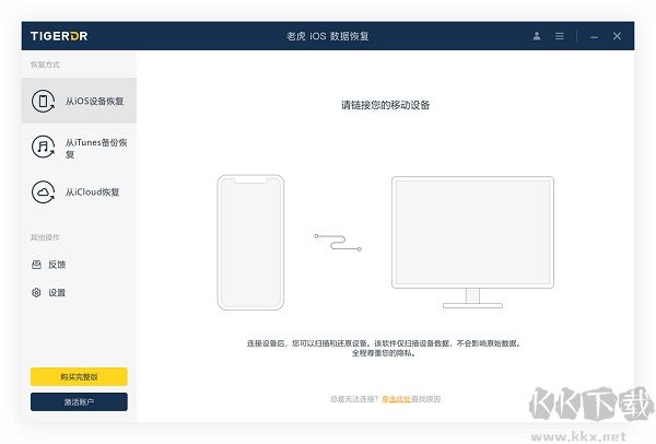 老虎數(shù)據(jù)恢復(fù)電腦版是一款能夠運(yùn)行在Windows和mac OS平臺(tái)里面的數(shù)據(jù)恢復(fù)軟件,軟件界面清爽,功能豐富,用戶能夠快速上手,幫助用戶恢復(fù)iOS設(shè)備的數(shù)據(jù),用戶可以恢復(fù)多種數(shù)據(jù),如短信、通話記錄、照片、通訊錄、日歷、微信聊天記錄、Safari 書(shū)簽、視頻等等,一鍵可以批量恢復(fù),需要的朋友趕快來(lái)kk網(wǎng)站試試吧!