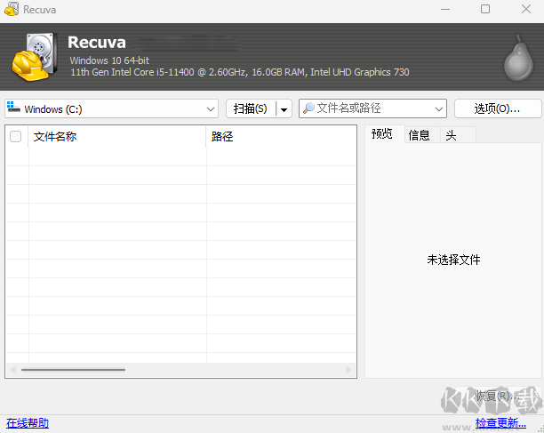 與大多數(shù)文件恢復(fù)工具不同,Recuva 可以從損壞的或新格式化的硬盤中恢復(fù)文件。更大的靈活性意味著更大的恢復(fù)機會。