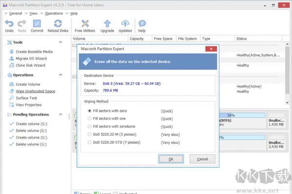 – 擦除分區(qū):永久擦除目標分區(qū)上的數據,防止通過任何數據恢復工具進行恢復