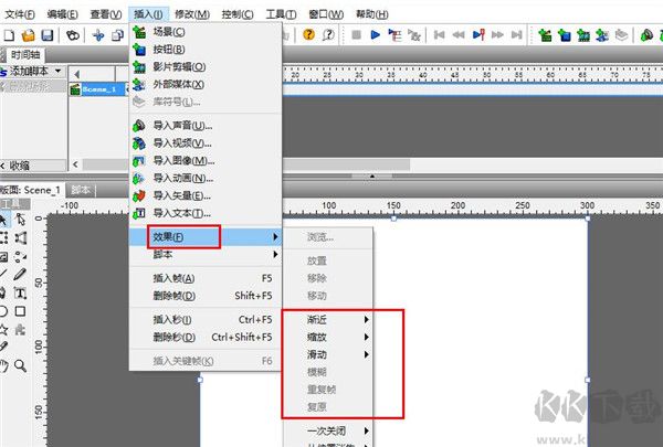 這個類別中主要包括漸進(Fade)、 縮放(Zoom)、 滑動(Slide)、 模糊(Blur) 、重復影格(Repeat Frames)、復原(restore)等分類。
