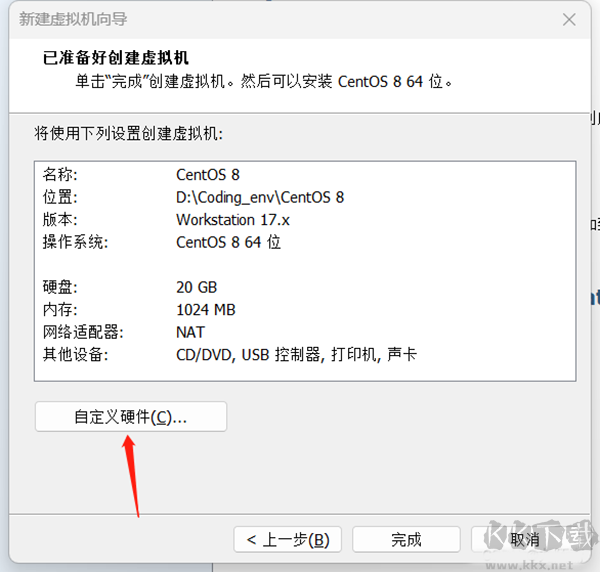 6、點擊自定義硬件的配置