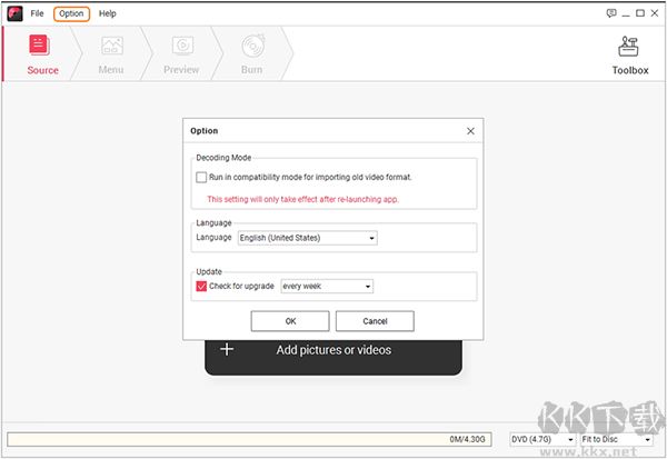 單擊“創(chuàng)建DVD視頻光盤”,您將看到DVD光盤刻錄的主界面。