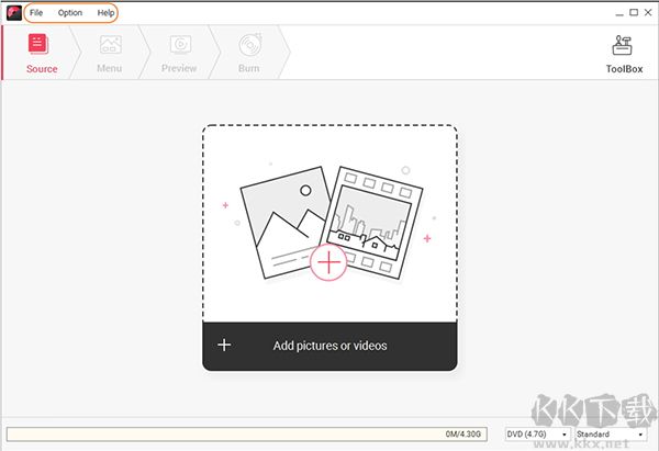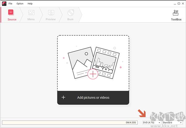 添加文件:添加圖片或視頻以進(jìn)行 DVD 或藍(lán)光刻錄。
