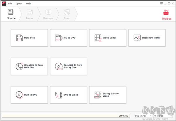 更多 DVD 工具 >>提供一鍵刻錄 DVD 光盤、視頻編輯器和照片幻燈片3 個(gè)額外功能。