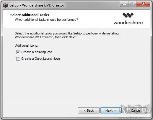 選擇您希望安裝程序在安裝 Wondershare DVD Creator 時(shí)執(zhí)行的其他任務(wù)、創(chuàng)建桌面圖標(biāo)或創(chuàng)建快速啟動(dòng)圖標(biāo),然后單擊“下一步”。