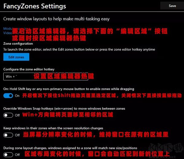 2、其中做的比較成熟的,是這個叫 Fancy Zones 的多任務(wù)視窗工具,它能創(chuàng)建合理的窗口布局,幫助用戶在開啟多個窗口的時候,能有條理的來掌控桌面。