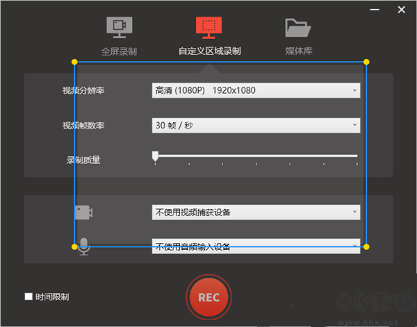 8、點(diǎn)擊自定義區(qū)域錄制按鈕進(jìn)入?yún)^(qū)域錄制頁面,該頁面可以進(jìn)行視頻區(qū)域錄制,具體效果如圖下所示。