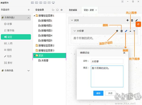 提供作品的武技、裝備、派系、種族、國度、職業(yè)等作品設(shè)定管理。