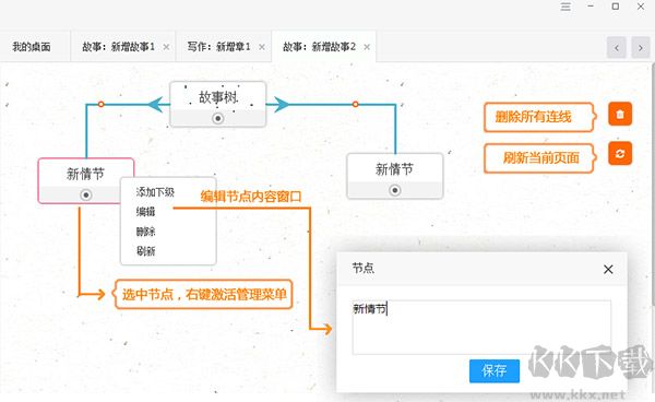 提供基于樹主干無限分權(quán)的思維導(dǎo)圖管理功能。適合創(chuàng)作各種故事關(guān)系,人物關(guān)系等相關(guān)的構(gòu)思引導(dǎo)圖。