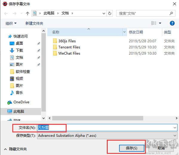 8、修改完成后,點擊Aegisub中文版菜單欄中文件,在彈出的選項中點擊【保持】選擇您要保存文件的位置,文件名,修改完成后點擊【保存】就可以了。