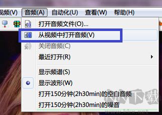 4、然后點擊Aegisub中文版菜單欄中的【音頻】在彈出的選項中點擊【從視頻中打開音頻】。