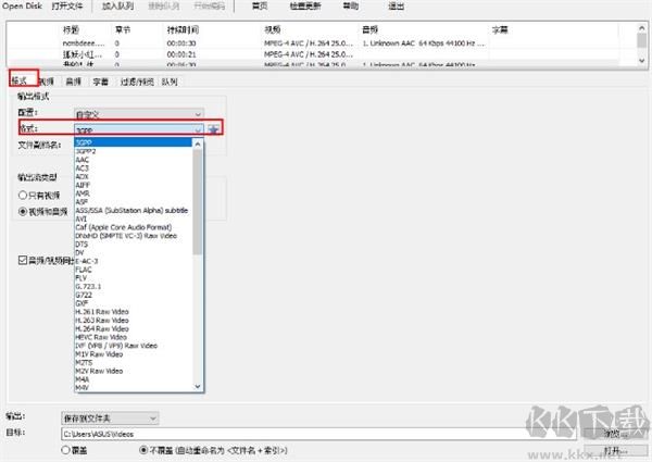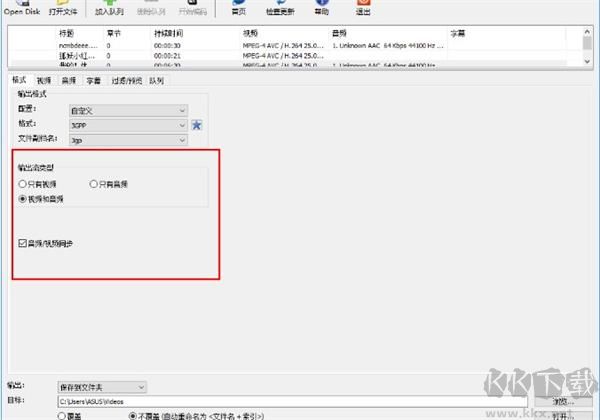 5、您還可以在輸出流類(lèi)型中選擇格式類(lèi)型,便于您查找要轉(zhuǎn)換的音頻或者視頻,并支持音頻/視頻同步。