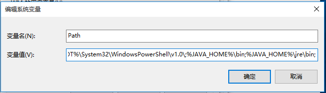 注意,不要刪除原來Path的變量值,直接在后面輸入代碼,點擊確定,