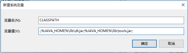 找到CLASSPATH,沒有就要新建,變量名為CLASSPATH,變量值為【.;%JAVA_HOME%\lib\dt.jar;%JAVA_HOME%\lib\tools.jar; 】,點擊確定,