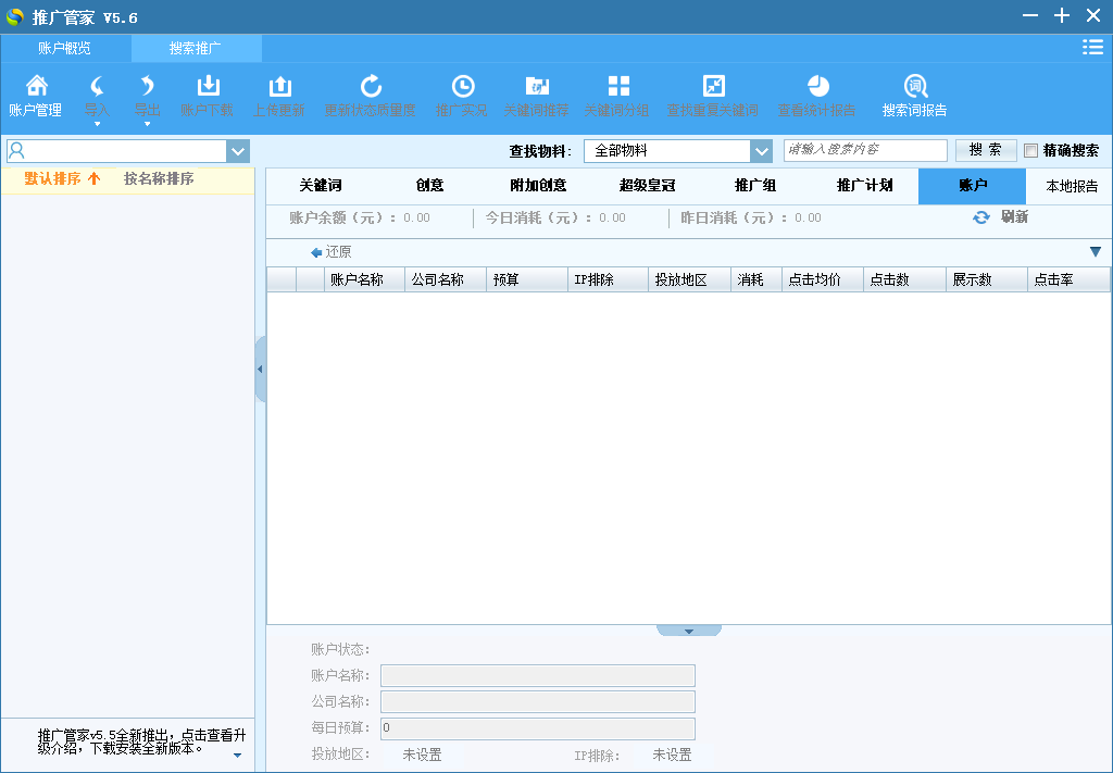 搜狗推廣管家是一款免費的網(wǎng)絡(luò)推廣軟件,支持多賬戶管理、高效編輯、關(guān)鍵詞分組、安全備份等多功能輔助,對搜狗推廣信息實現(xiàn)更加便捷,更為高效地管理優(yōu)化。