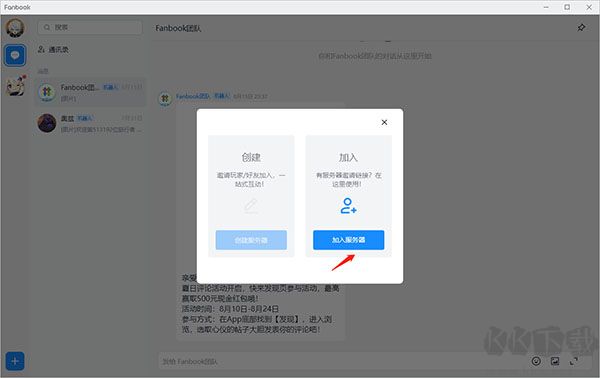 1、進入Fanbook pc版,點擊下方加號
