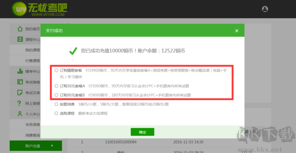 填寫(xiě)之后點(diǎn)擊“確定” 充值成功之后會(huì)彈出套餐選擇窗口頁(yè)面,勾選你要訂購(gòu)的套餐之后點(diǎn)擊“確定”