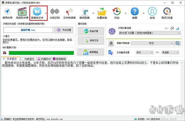 錄音啦支持云端以及離線語音、文字識別技術(shù),識別速度快