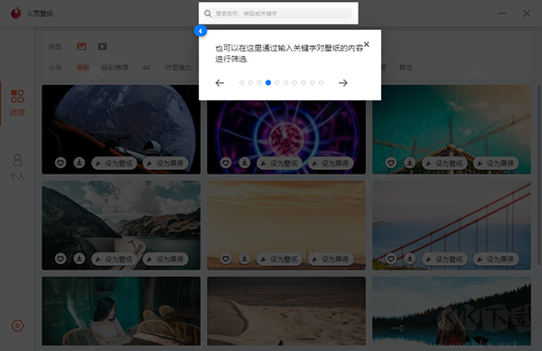 火雨壁紙電腦版是一款超級(jí)好用實(shí)用的電腦桌面美化軟件,這款軟件有著超級(jí)強(qiáng)大的功能,為用戶們提供了海量靜態(tài)和動(dòng)態(tài)的桌面以及屏保壁紙,壁紙種類齊全,匯聚了4K、影視、體育、游戲、科技、帥哥美女、動(dòng)物萌寵等多種不同類型高清壁紙,全程還都是免費(fèi)使用的,喜歡這款軟件的小伙伴千萬(wàn)不要錯(cuò)過(guò)~