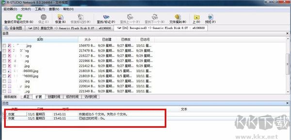 11、接著文件就會開始恢復(fù),恢復(fù)完成后在下方會顯示恢復(fù)的日志信息,成功或者失敗都會有顯示的,成功恢復(fù)的就可以找到保存的位置查看恢復(fù)的文件了。
