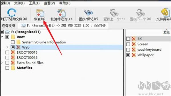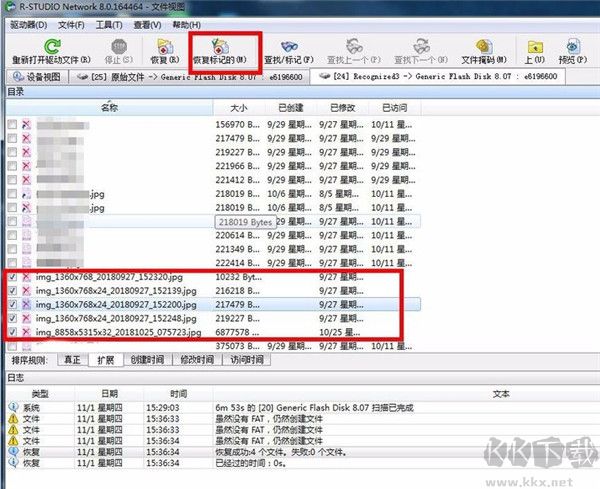 9、接著在要恢復(fù)的圖片選項前面的方框內(nèi)打勾,然后選擇上方的恢復(fù)標(biāo)記的選項,如圖所示: