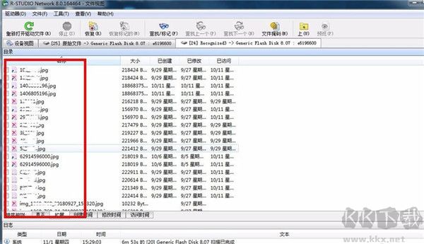 8、比如這里選擇了圖形圖片,也就是要恢復(fù)圖片了,接著就會進(jìn)入到圖片的列表,圖標(biāo)上有紅叉的就是丟失的文件。