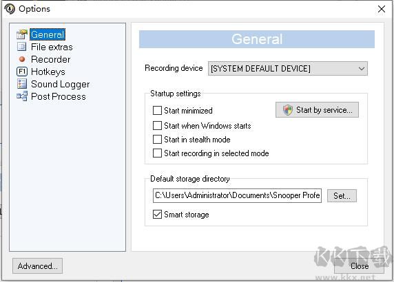 確保已啟用在選定模式下開始錄制選項,如果您將Snooper Pro作為服務運行,則除非您使用Snooper的內(nèi)置調(diào)度程序,否則幾乎應始終檢查此設置