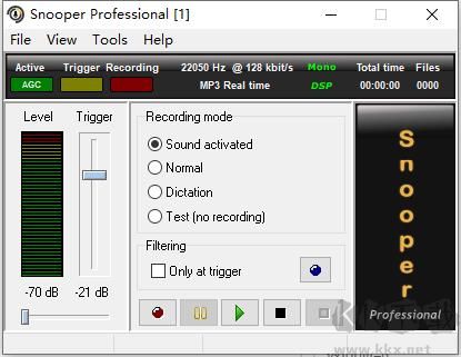 Snooper pro(電腦錄音軟件)是一款小巧專業(yè)的電腦錄音軟件。這款軟件能夠幫助用戶很好的上手進行錄屏,使用便捷,功能豐富,能夠錄制電腦的麥克聲音,錄音效果非常好,能幫助用戶進行會議記錄、電話監(jiān)控和錄音、廣播錄音等內(nèi)容,適用各類場景,滿足個性化需求,需要的朋友千萬不要錯過哦!