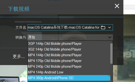 2、軟件內置視頻轉換器,當你下載視頻時你可以選擇你需要的格式,然后點擊開始下載,下載完成后會自動轉換。