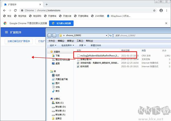 4、將“mciiogijehkdemklbdcbfkefimifhecn_0.11.0_chrome.zzzmh.cn.crx”拖入到瀏覽器中