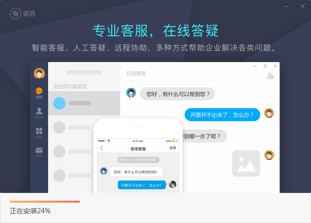 諾言是原來(lái)的諾諾助手,這款助手是由諾諾網(wǎng)推出的一款在線客服軟件,它的作用是為航天信息股份有限公司的各類開(kāi)票軟件,當(dāng)然對(duì)于公司人員來(lái)說(shuō)使用諾言直接可以替代即時(shí)通訊軟件,和公司同事進(jìn)行溝通交流的好幫手!智能客服、人工答疑、遠(yuǎn)程協(xié)助,多種方式幫助企業(yè)解決各類問(wèn)題。