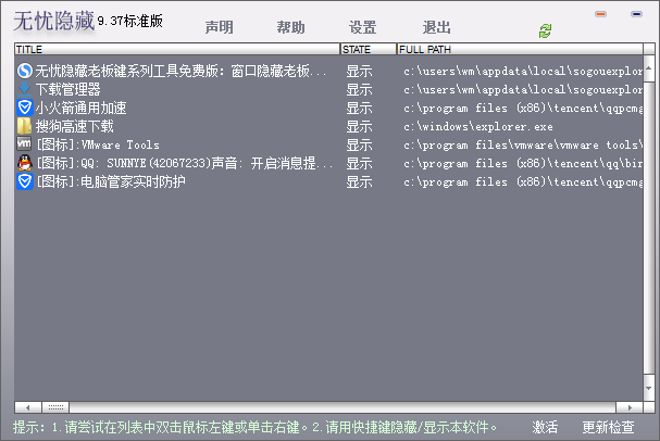 使用鼠標或鍵盤快捷鍵瞬間隱藏指定窗口或通知區(qū)圖標。