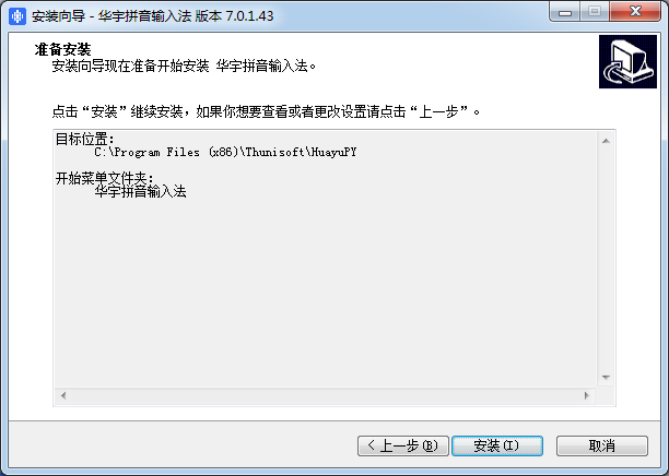 安裝向?qū)КF(xiàn)在準(zhǔn)備開(kāi)始安裝華宇拼音輸入法。