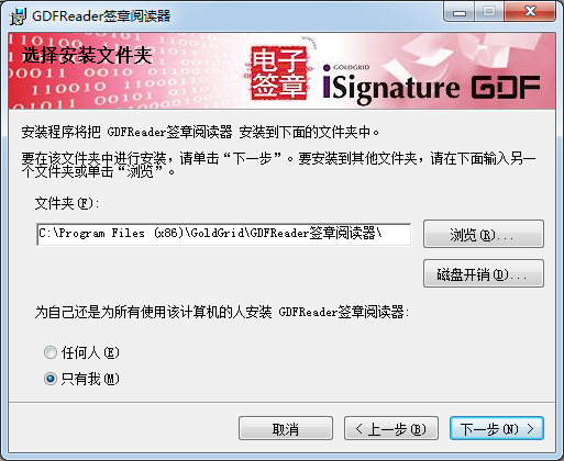 安裝程序?qū)袵DFReader簽章閱讀器安裝到下面的文件夾中。在該文件來中進行支裝,